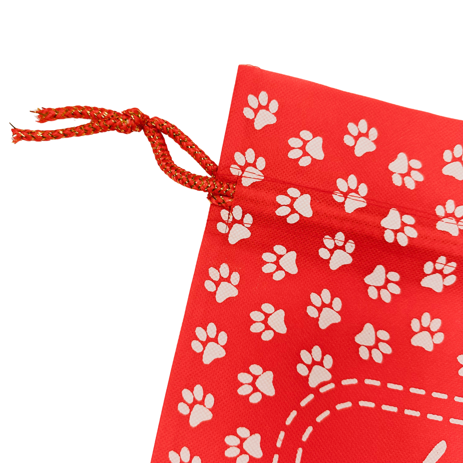 Made from cotton these sacks measure 42cm x 30cm when laid flat and close with a drawstring. You can fit lots of cute presents for your furry friends in here, and they can be used for any pet with paws!