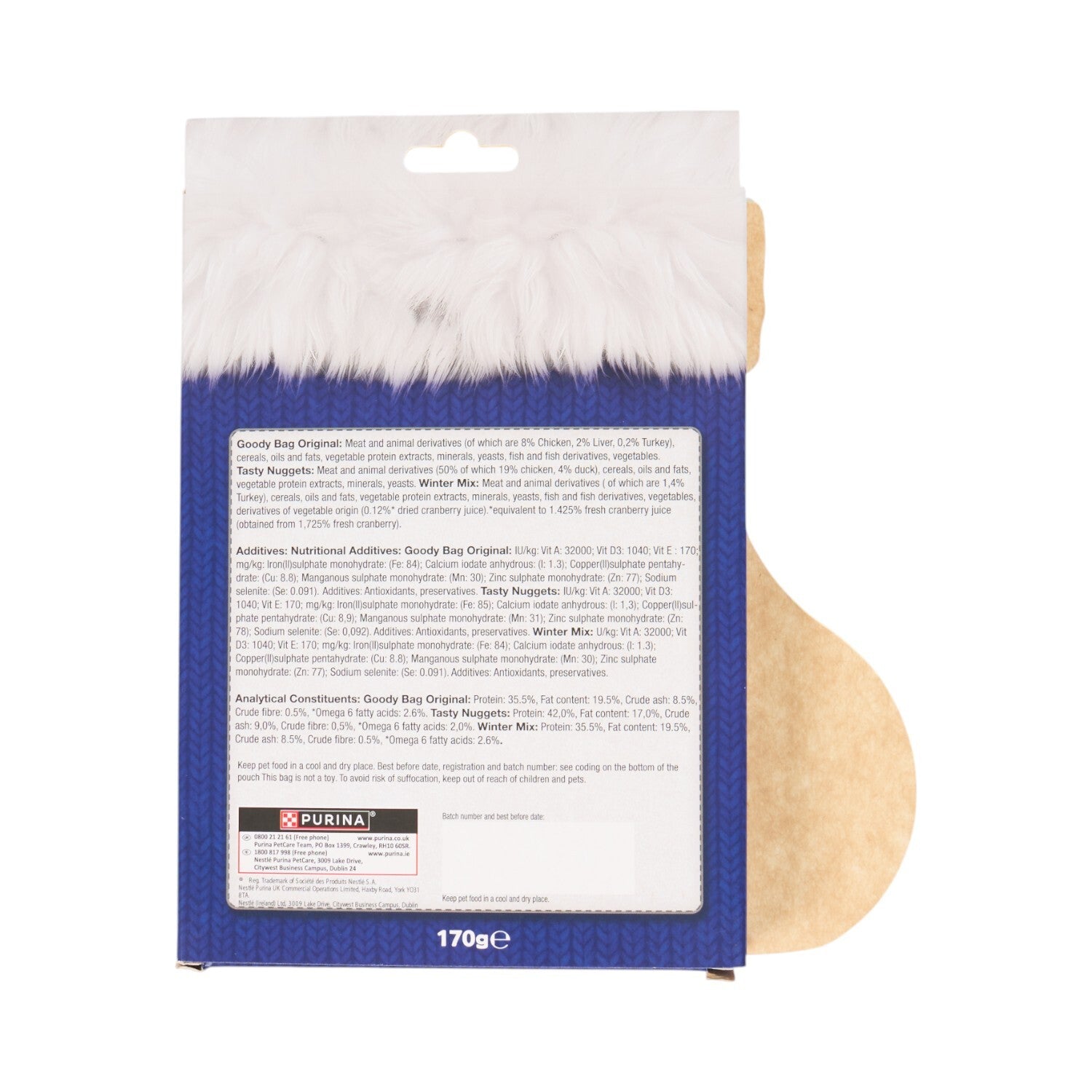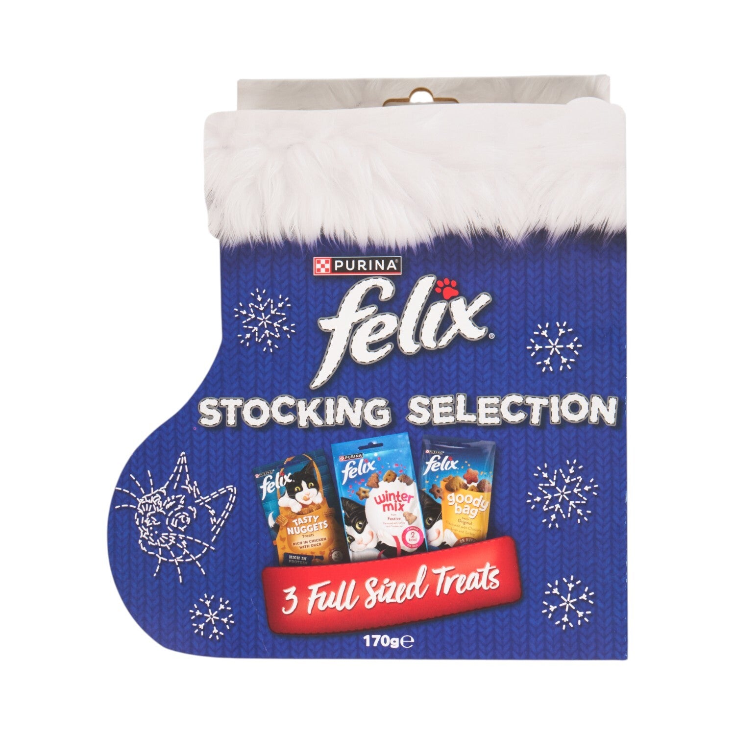 - Includes: 1 x Felix Tasty Nuggets Treats, 1 x Felix Winter Mix Treats and 1 x Felix Goody Bag Treats