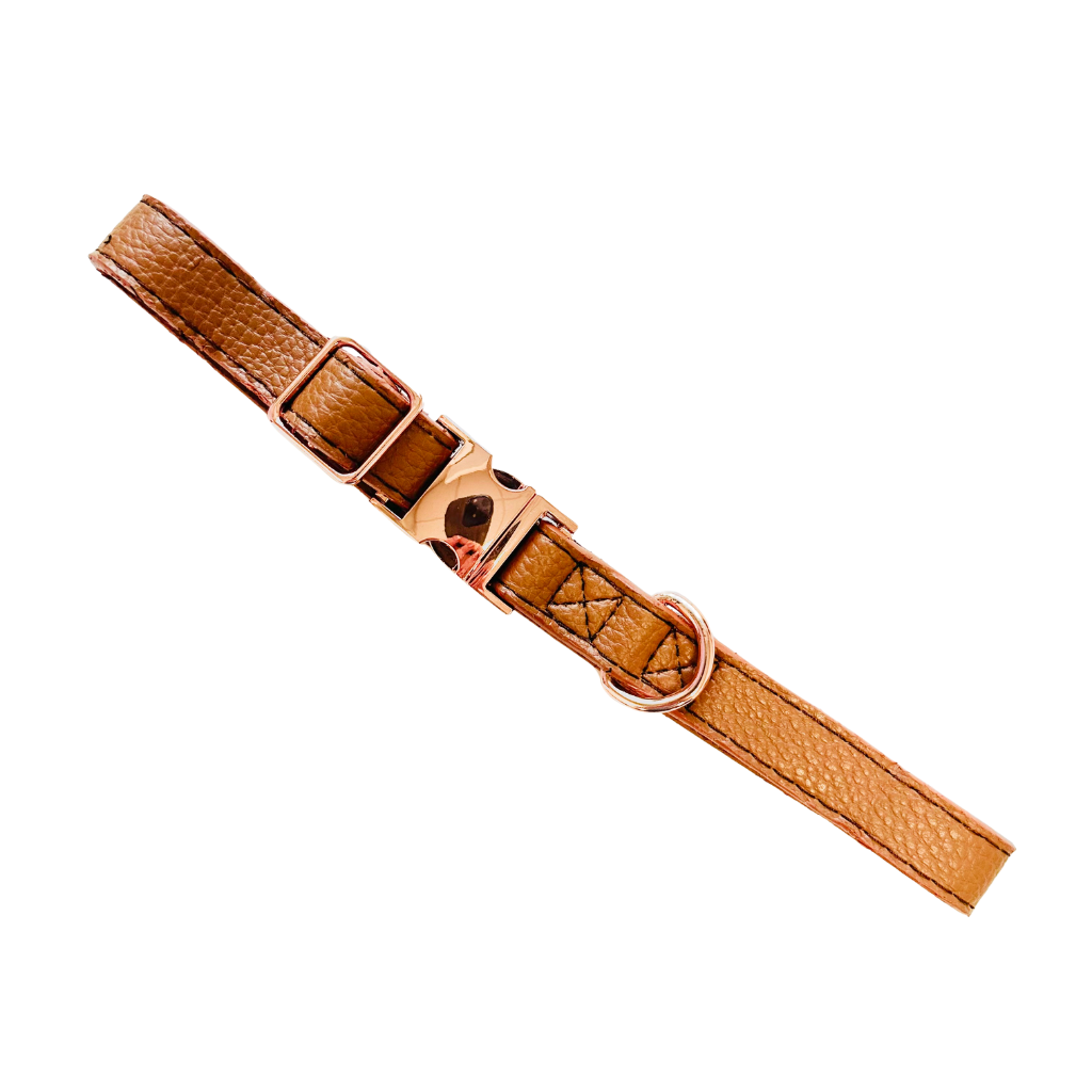 Our Faux Leather Collars are soft and flexible and come in various sizes with rose gold hardwear.