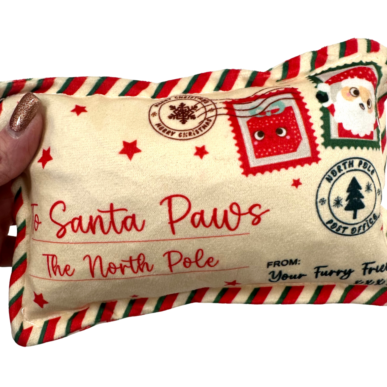 Let your pooch write it's own christmas wish list to Santa Paws with this plush toy. A perfect Christmas gift. It features on the back: