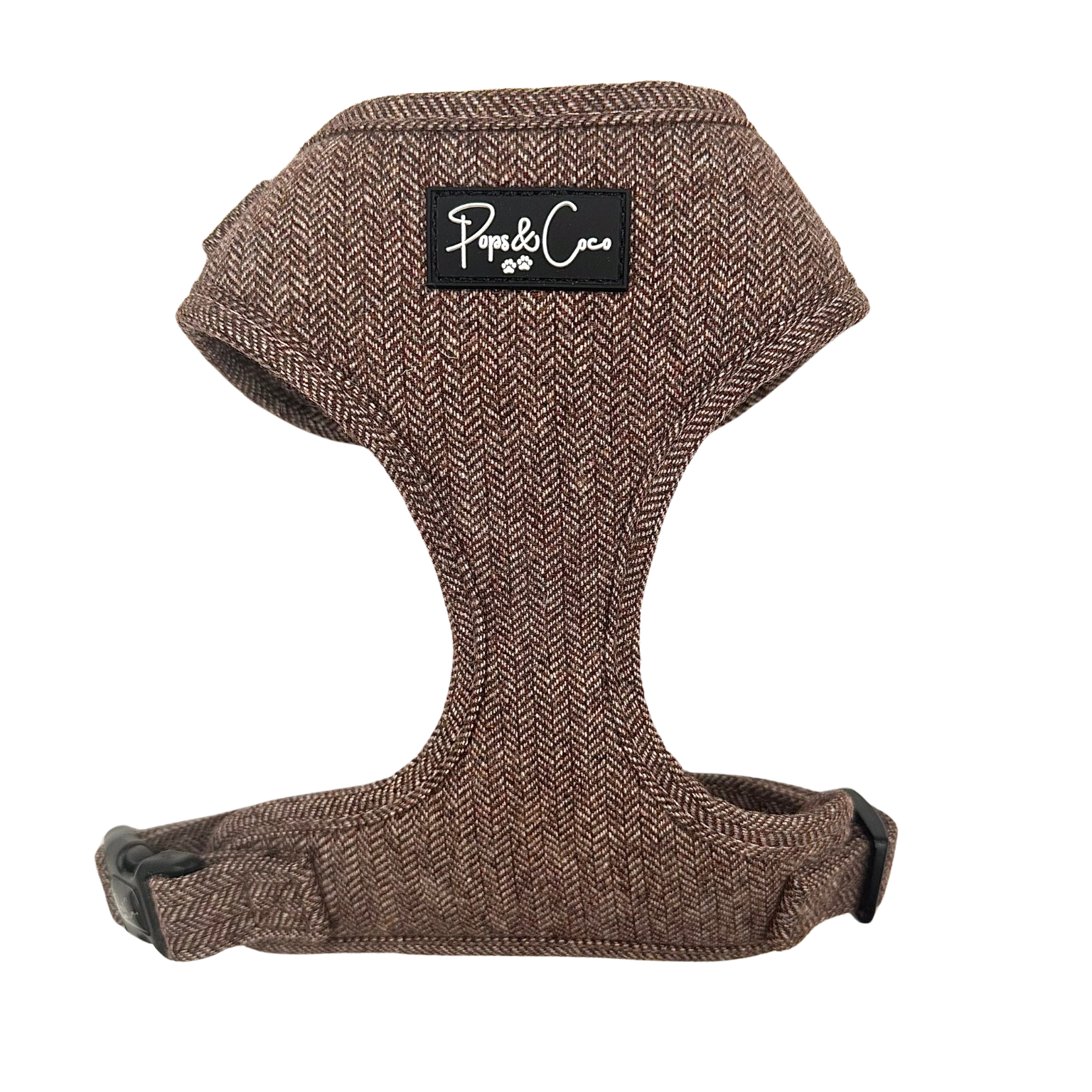 Luxury Tweed Fully Adjustable Harness in Cocoa Brown
