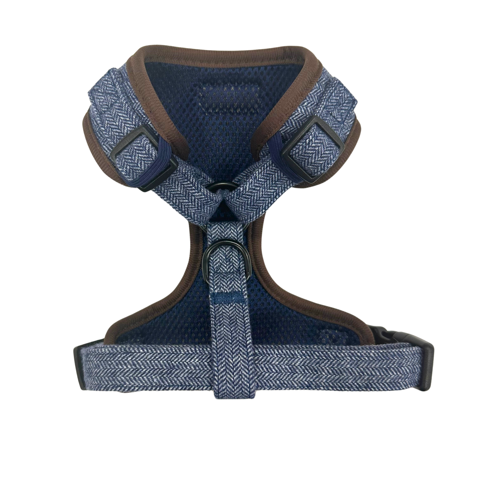These harnesses are super soft and of course are fully adjustable on the neck and chest. They have pattern matched straps and a d-ring for your lead and ID tags - the perfect choice for a fashionable pooch!