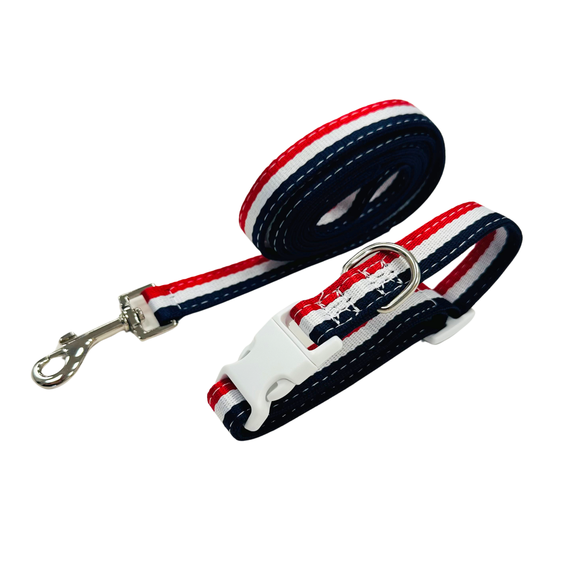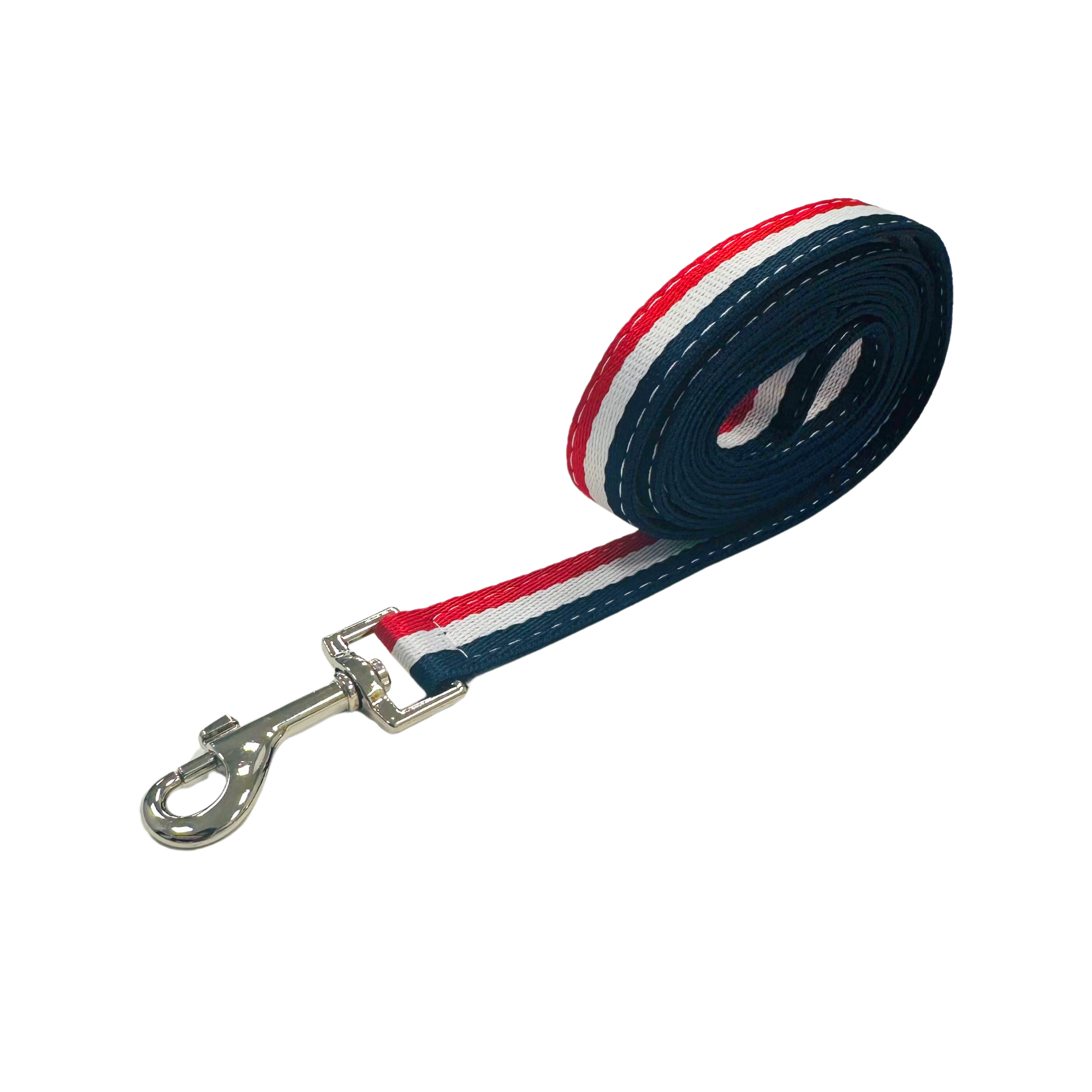 This fabric lead is a gorgeous addition to any pups collection! With blue, white and red stripes this lead is fully washable and a gorgeous addition to your pups collection. Plus this also has matching collars available.