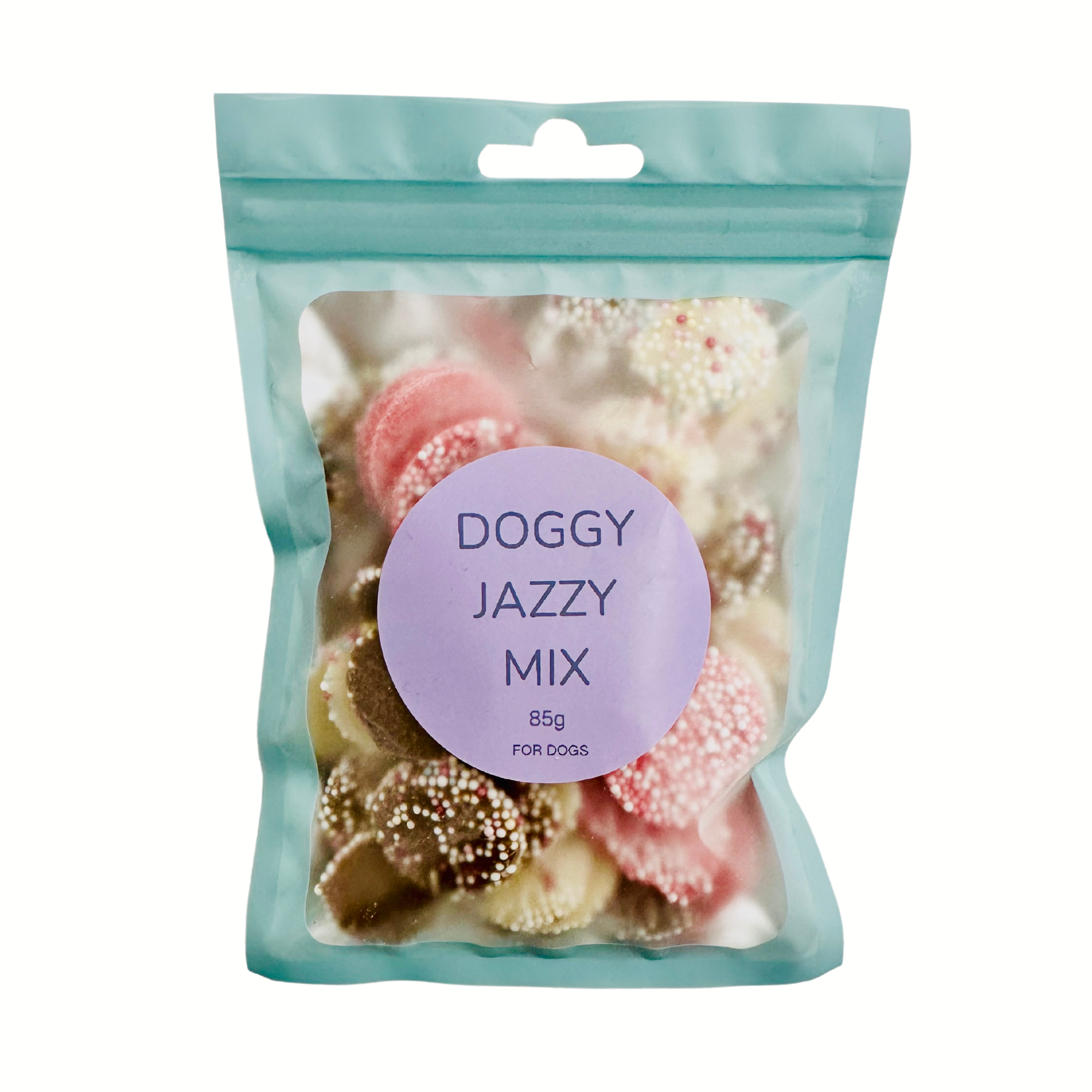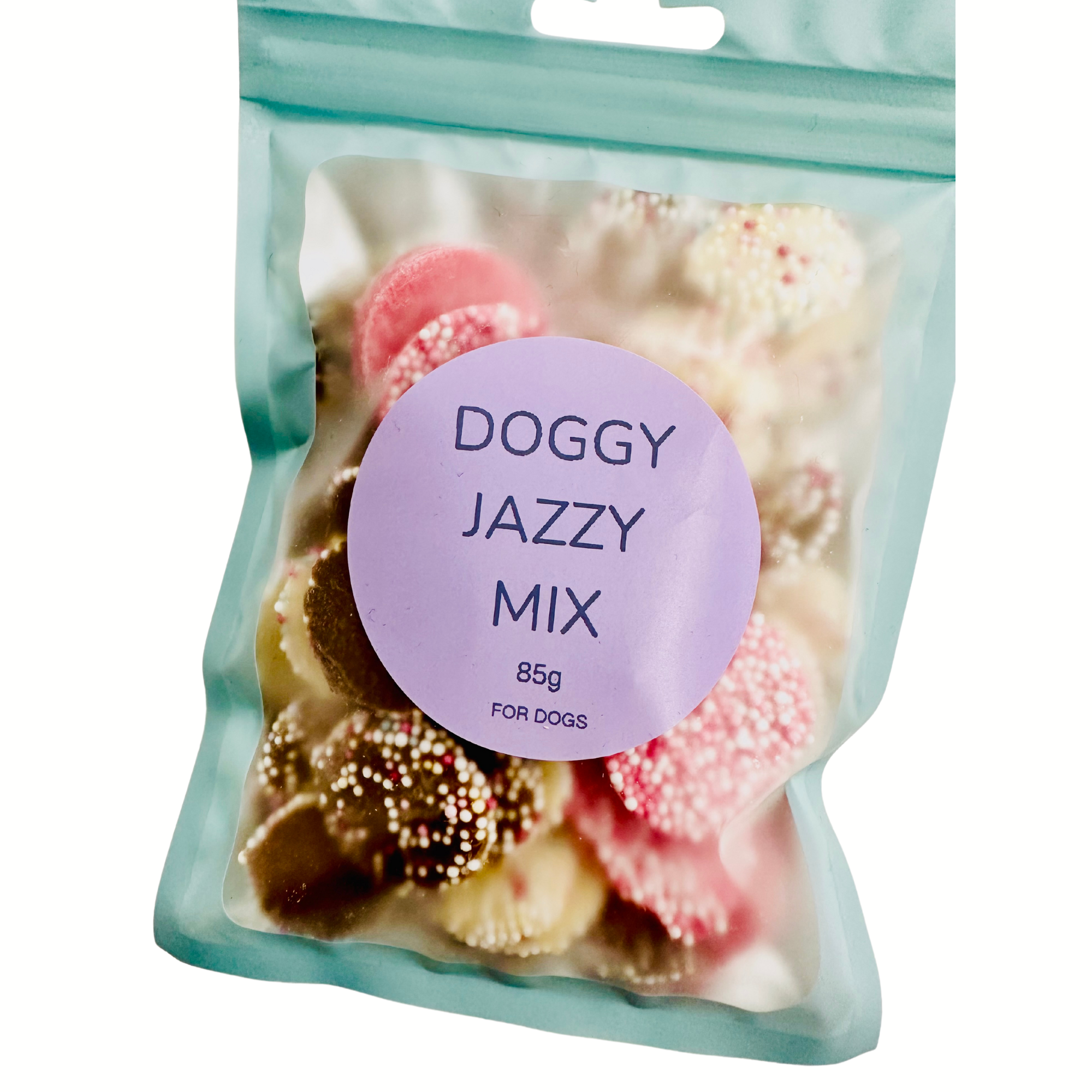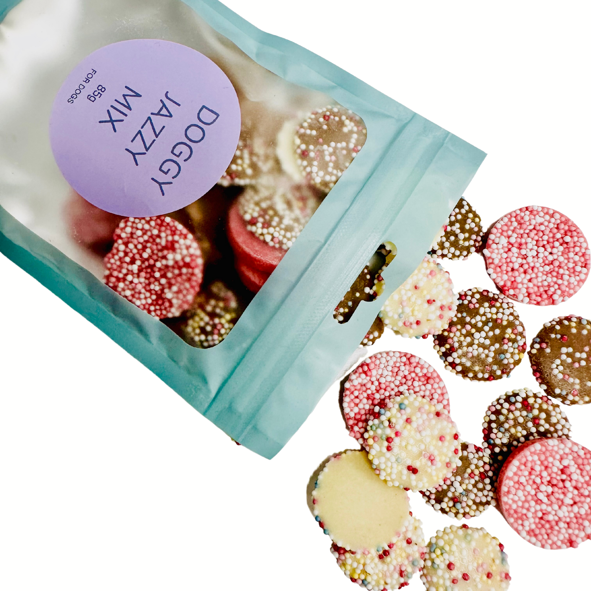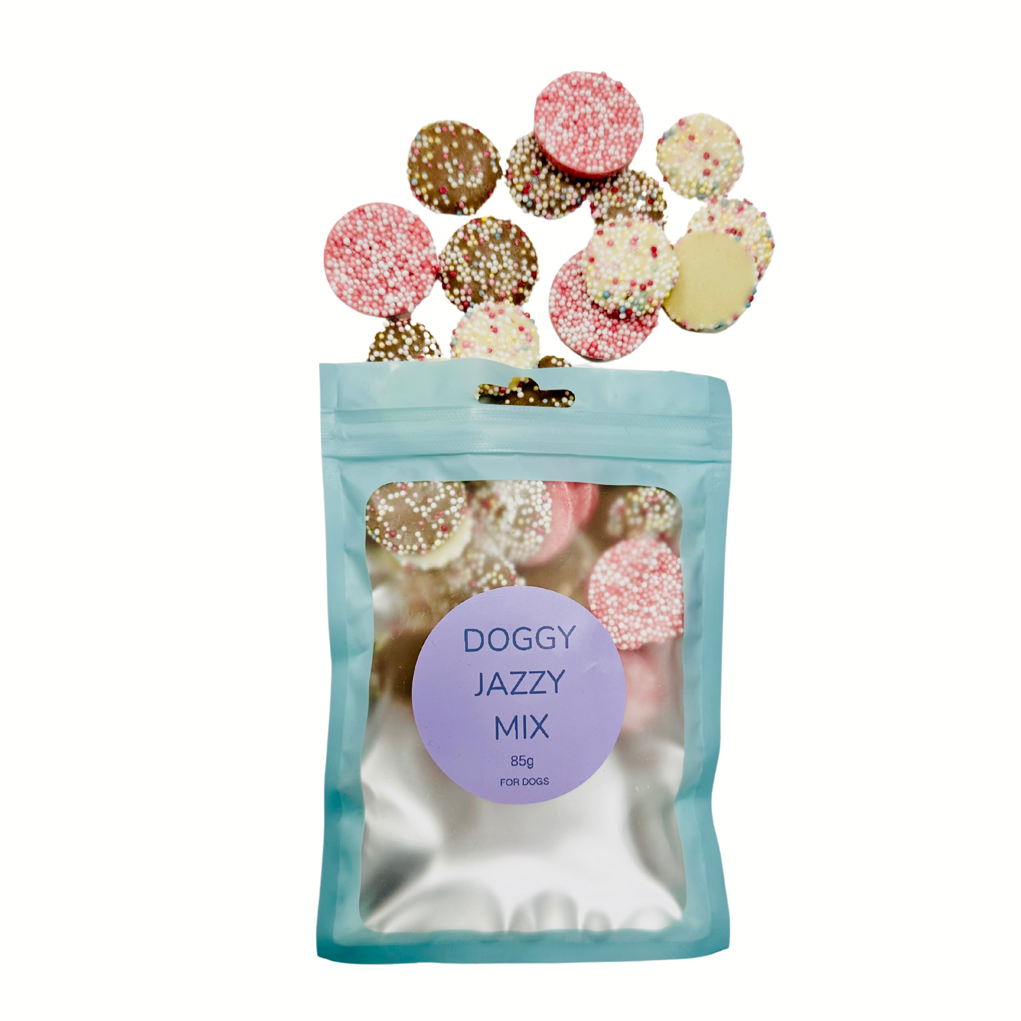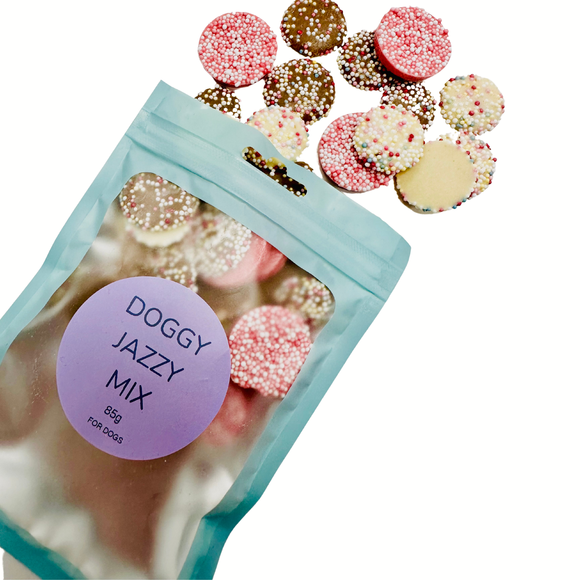 Our Doggie Jazzies are the pawfect treat for your dog! The perfect sized bag at 85g means these are great for a birthday treat, a gift, or just to stock up on in your cupboard! The chocolate is dog friendly chocolate and therefore as tasty as it looks, it's not suitable for humans!