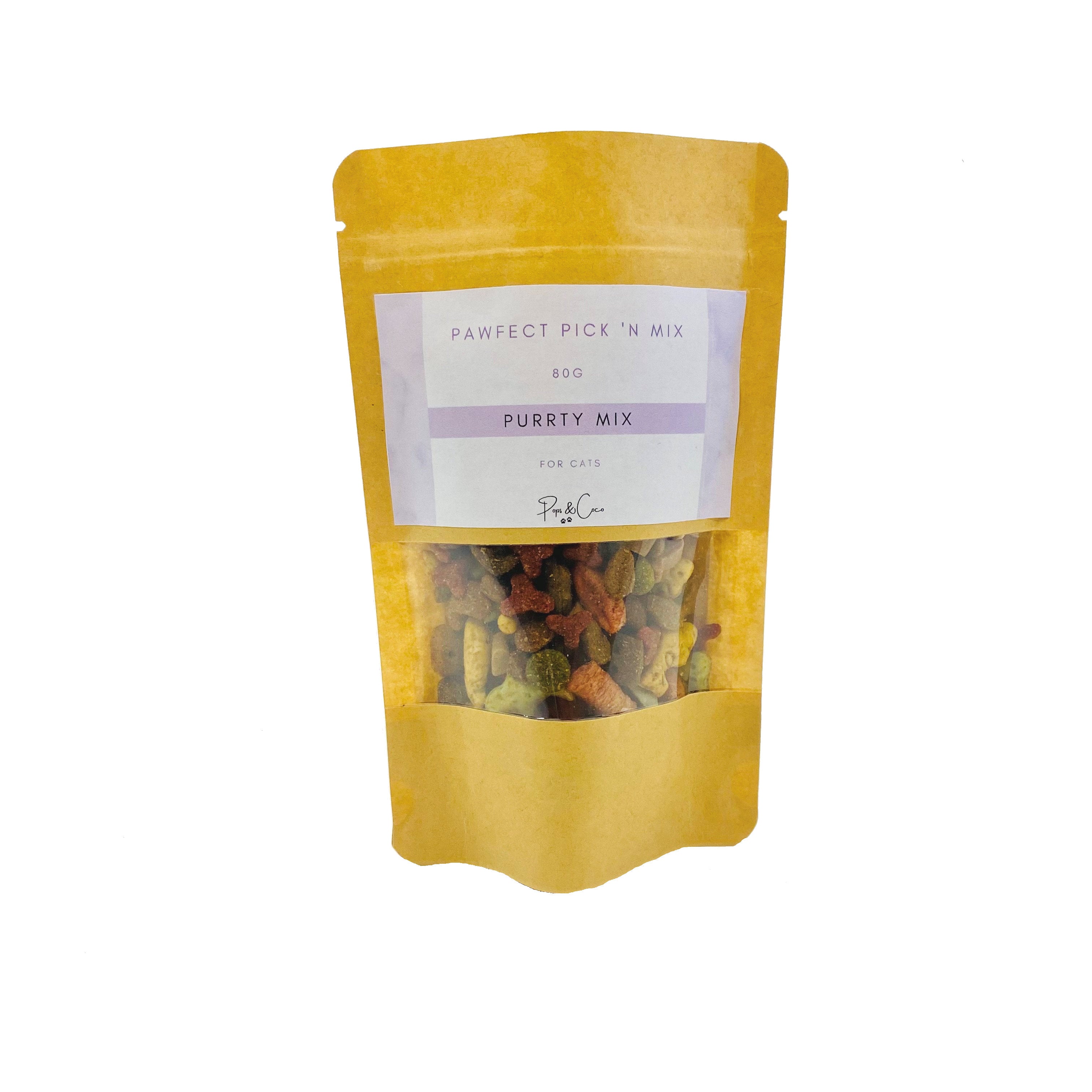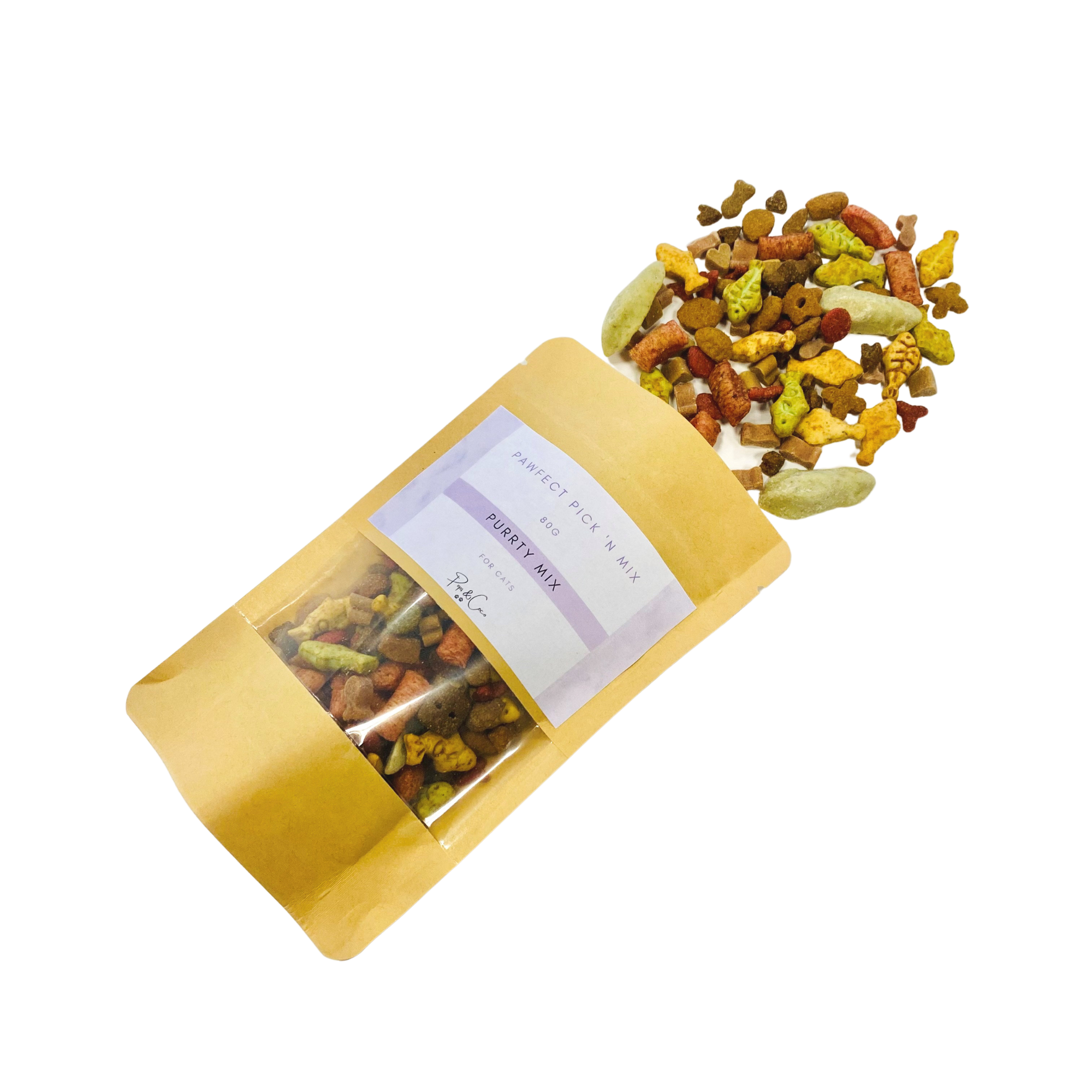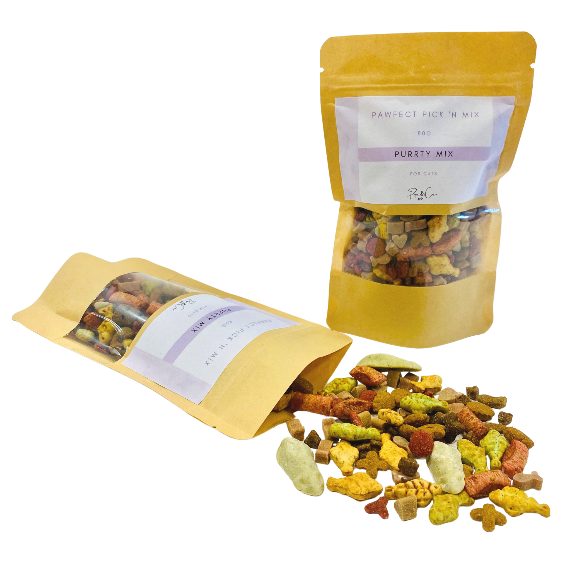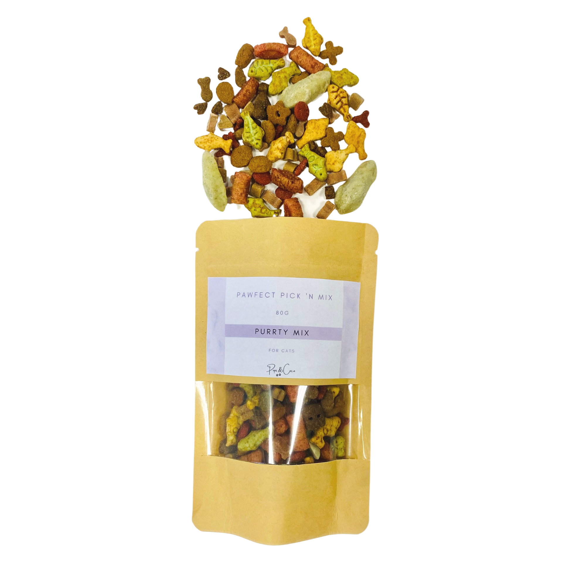 Our Pawfect Pick 'N Mix for cats is one of a kind! We love having a cat zone here at Pops & Coco, and we always feel our feline friends get missed out especially when it comes to treats! Jam packed with our hand picked variety of biscuits and cat nip treats, we know your cat will find this bag super tasty! Perfect as a treat or as a birthday gift! The chocolate is filled with catnip (as are many of the other treats) and is made with cat friendly chocolate and therefore as tasty as it looks. it's not suitable for humans!