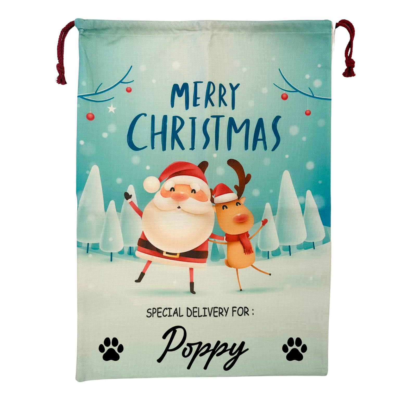 Our Personalised Pet Sacks are THE perfect place to store all your pet's presents this Christmas! Great for cats, dogs or any other pet you may have, these sacks have a festive greeting and we will personalise them with your pets name. They are also fully lined and are nice and thick and sturdy and close with a drawstring. Plus they are HUGE!!