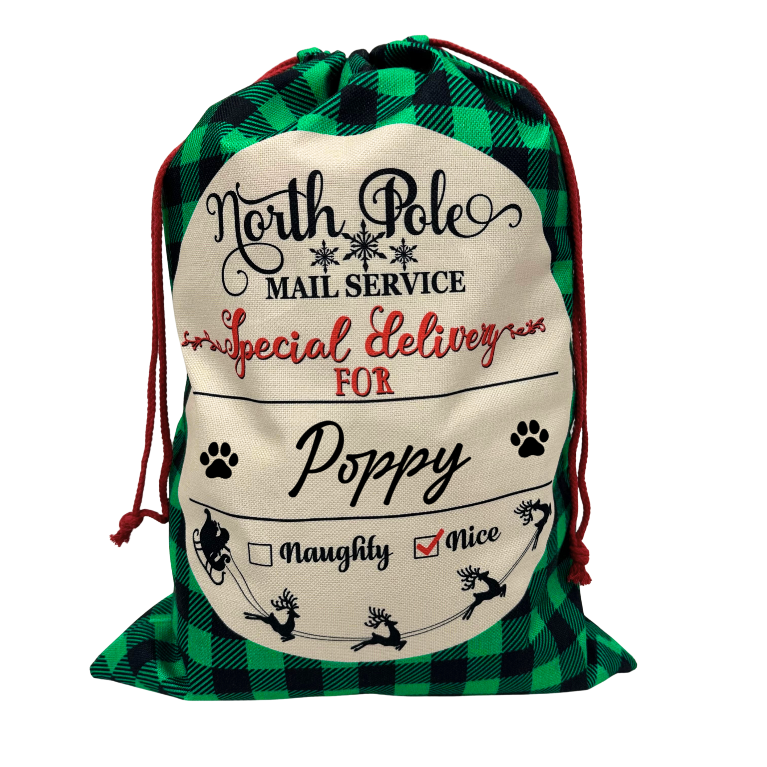 Our Personalised Pet Sacks are THE perfect place to store all your pet's presents this Christmas! Great for cats, dogs or any other pet you may have, these sacks have a festive greeting and we will personalise them with your pets name. They are also fully lined and are nice and thick and sturdy and close with a drawstring. Plus they are HUGE!!
