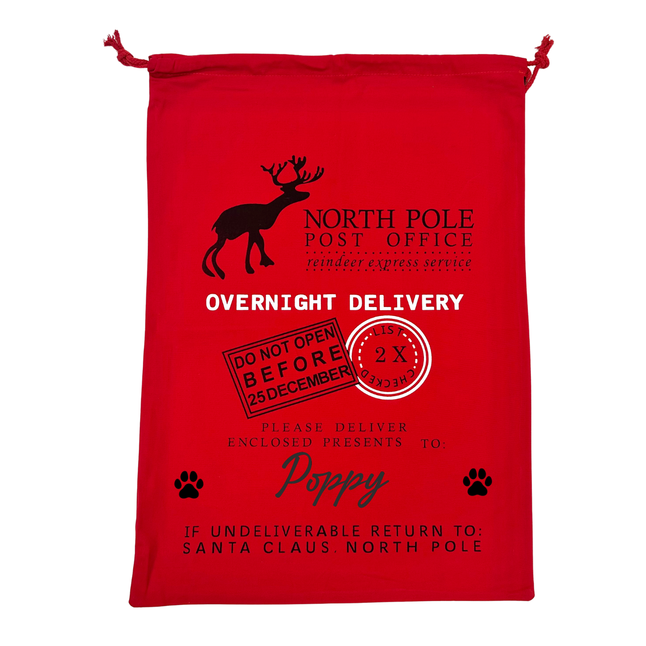 Our Personalised Pet Sacks are THE perfect place to store all your pet's presents this Christmas! Great for cats, dogs or any other pet you may have, these sacks have a festive greeting and we will personalise them with your pets name. They are also fully lined and are nice and thick and sturdy and close with a drawstring. Plus they are HUGE!!