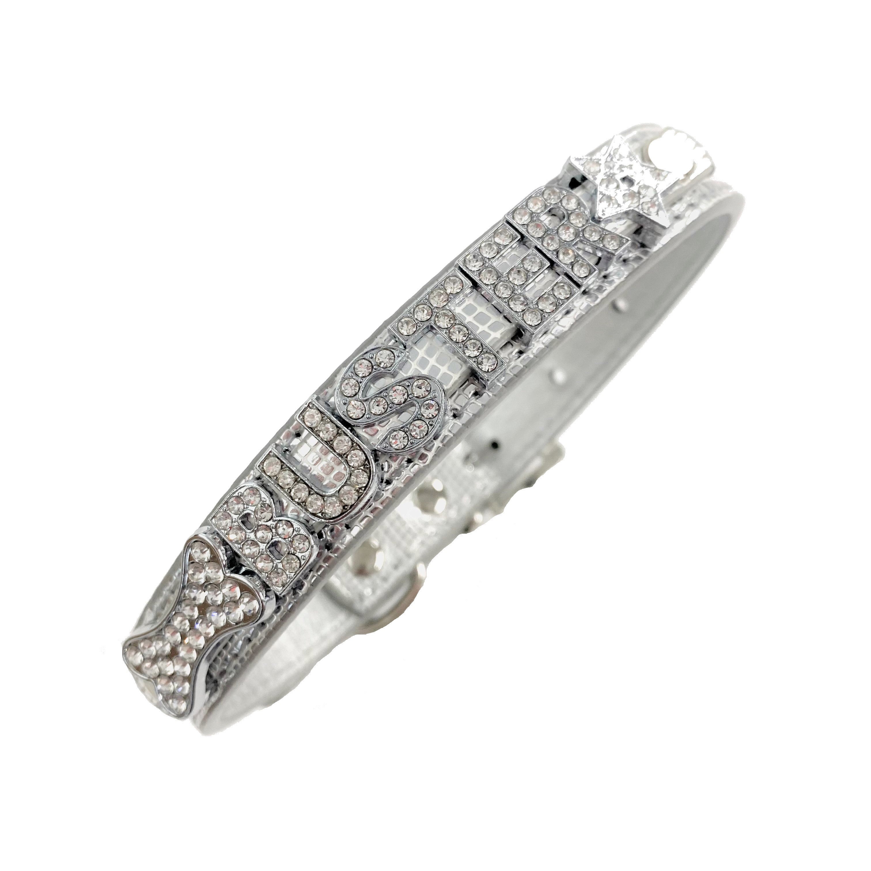 If your pet has less letters in their name than stated then up to 2 diamante stars OR a diamante bone will be added to the beginning or end of the name. Please see pictures for examples.