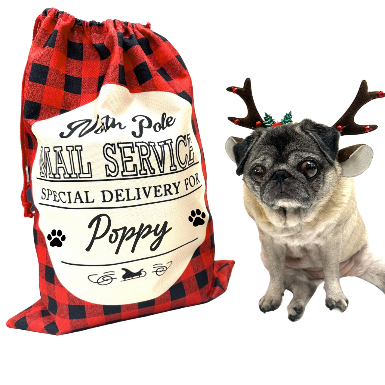 Our Personalised Pet Sacks are THE perfect place to store all your pet's presents this Christmas! Great for cats, dogs or any other pet you may have, these sacks have a festive greeting and we will personalise them with your pets name. They are also fully lined and are nice and thick and sturdy and close with a drawstring. Plus they are HUGE!!