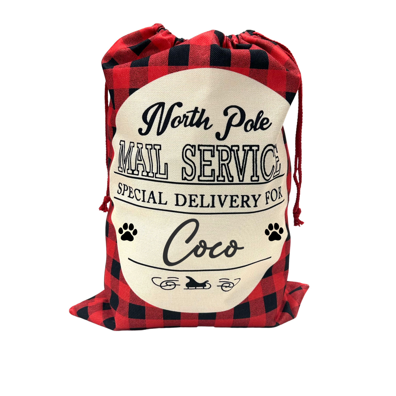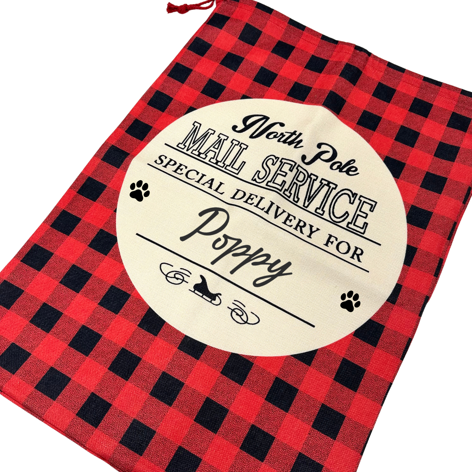 Personalised Red Checked Christmas Sack