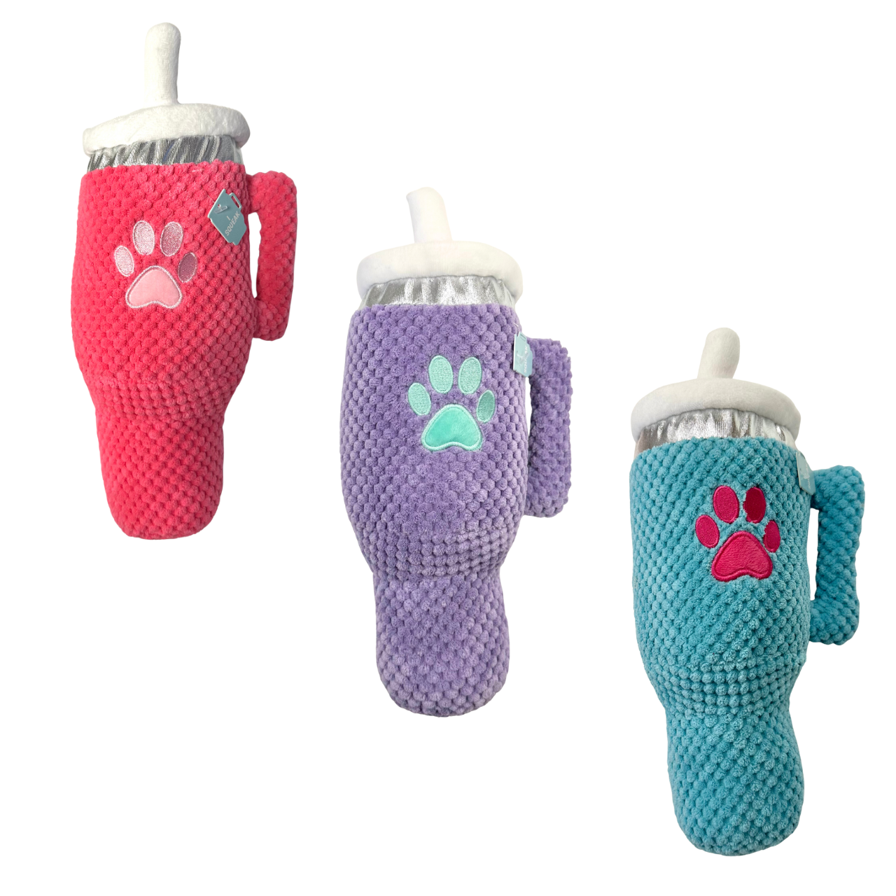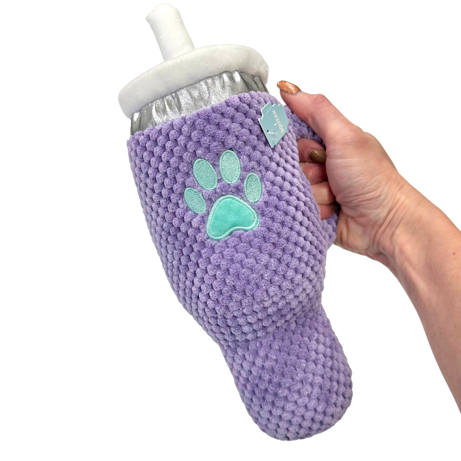 The Travel Tumbler Dog Toy Plush is a delightful Christmas gift. It's squeaky and cute, ensuring your dog has fun. The toy is large, measuring 33cm x 15 x cm x 10cm. Choose between Purple or Blue or Pink.