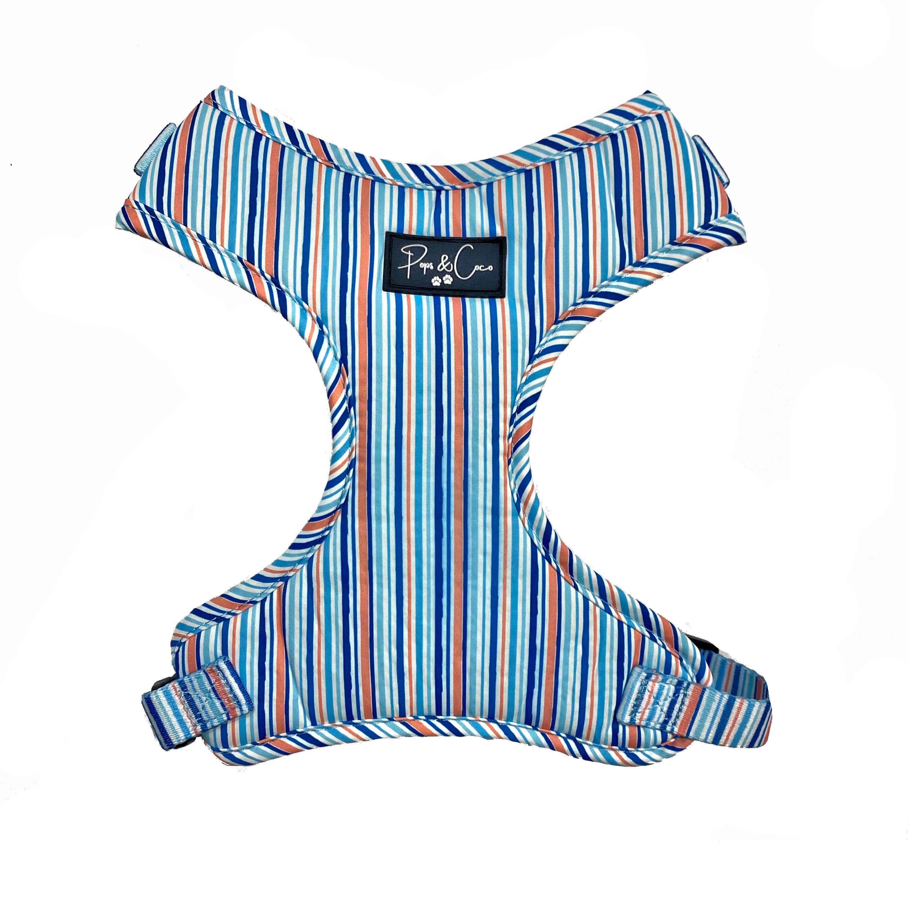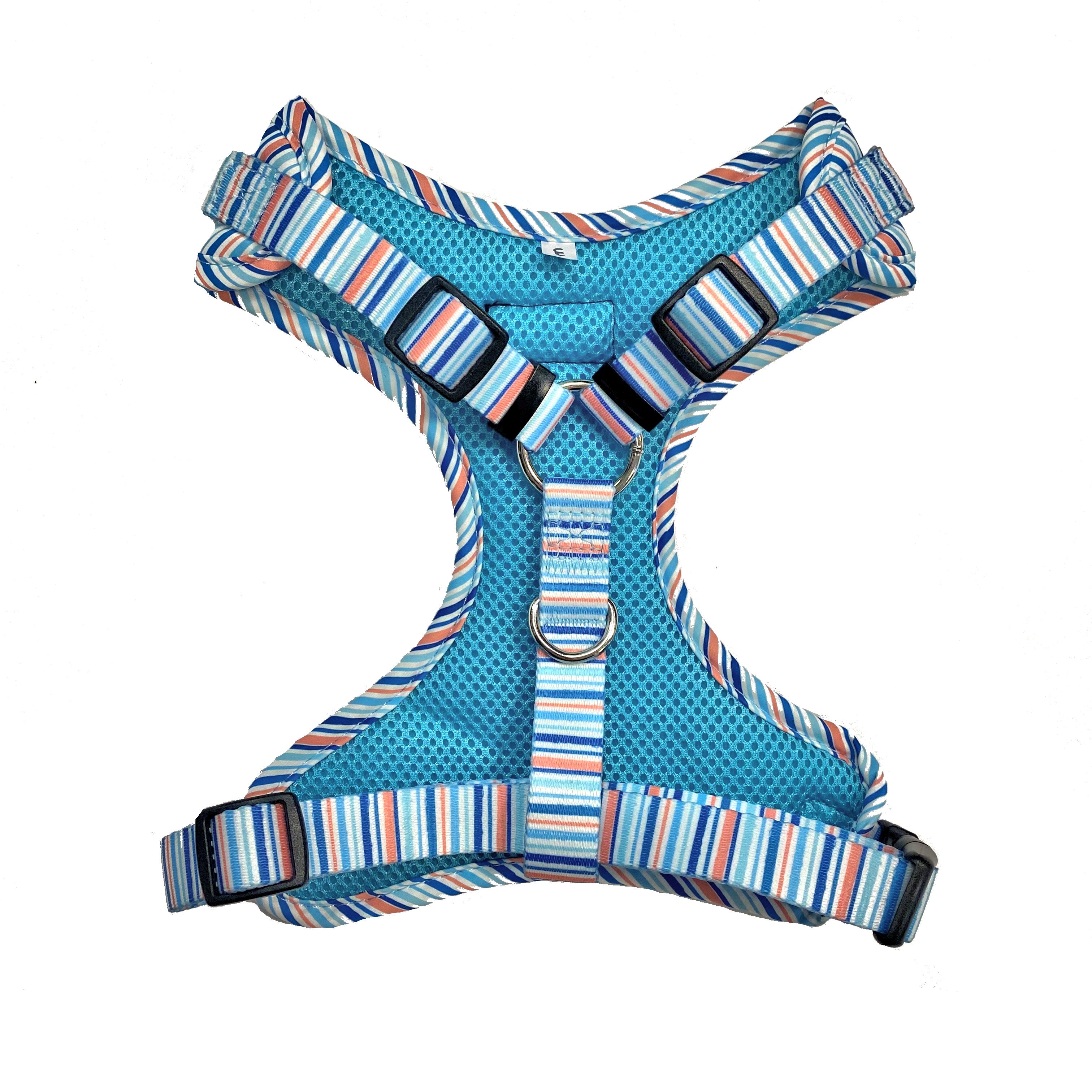 Smarty Pants is one of our fully adjustable harnesses with beautiful rose gold hardware - meaning you can adjust the neck and the chest. It has pattern matched straps too - the perfect choice for a fashionable pooch! It has a d-ring attachment for your lead and ID tags too!