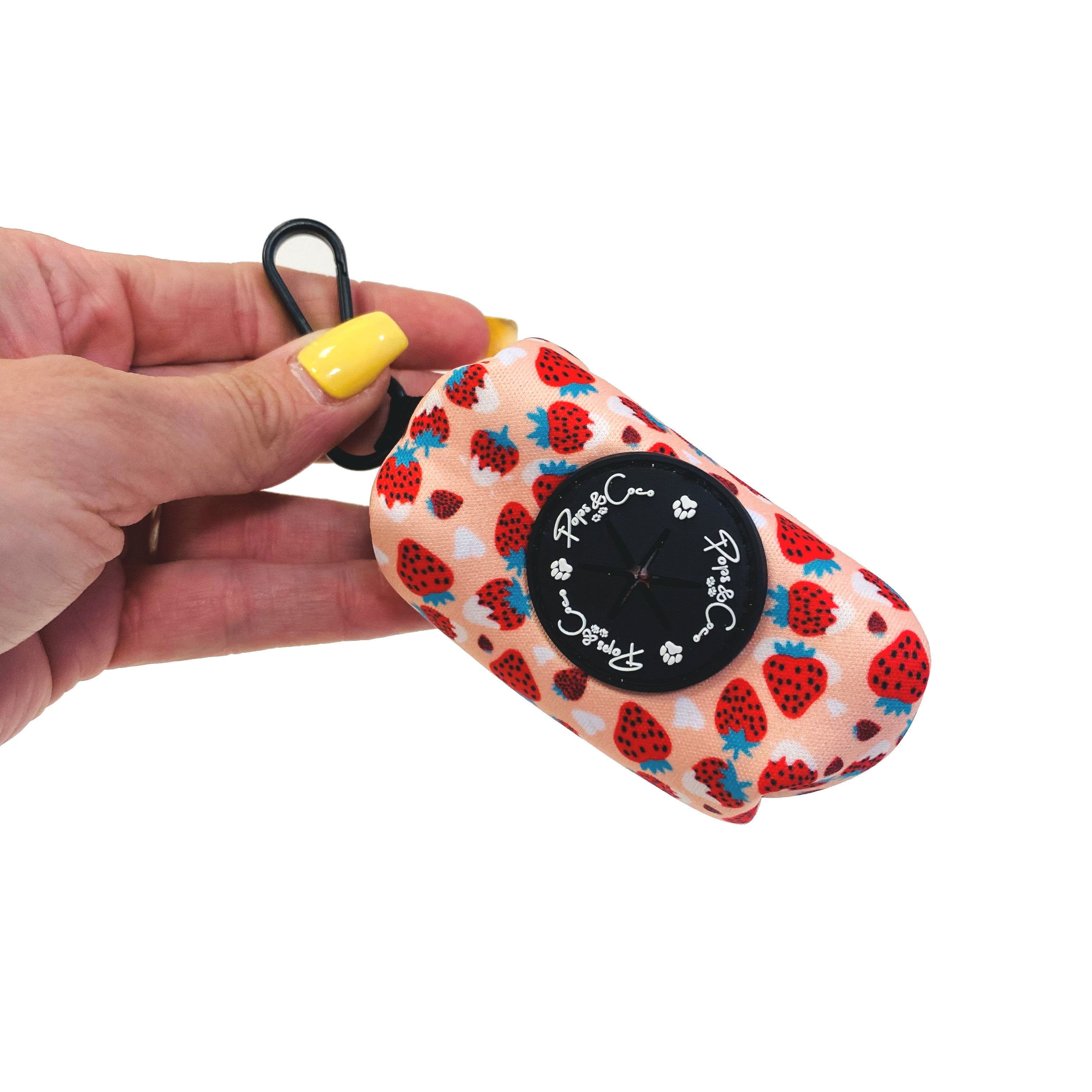 Our gorgeous Strawberries & Cream Poo Bag Dispensers have a gorgeous pattern and are big enough to hold extra rolls of bags too!