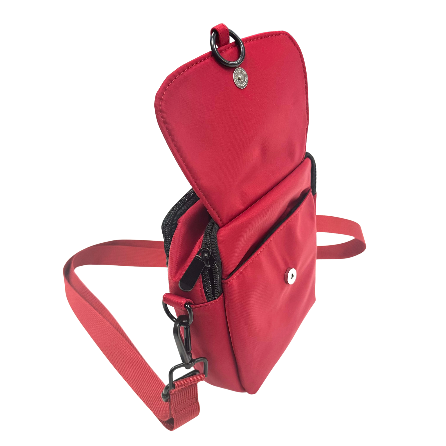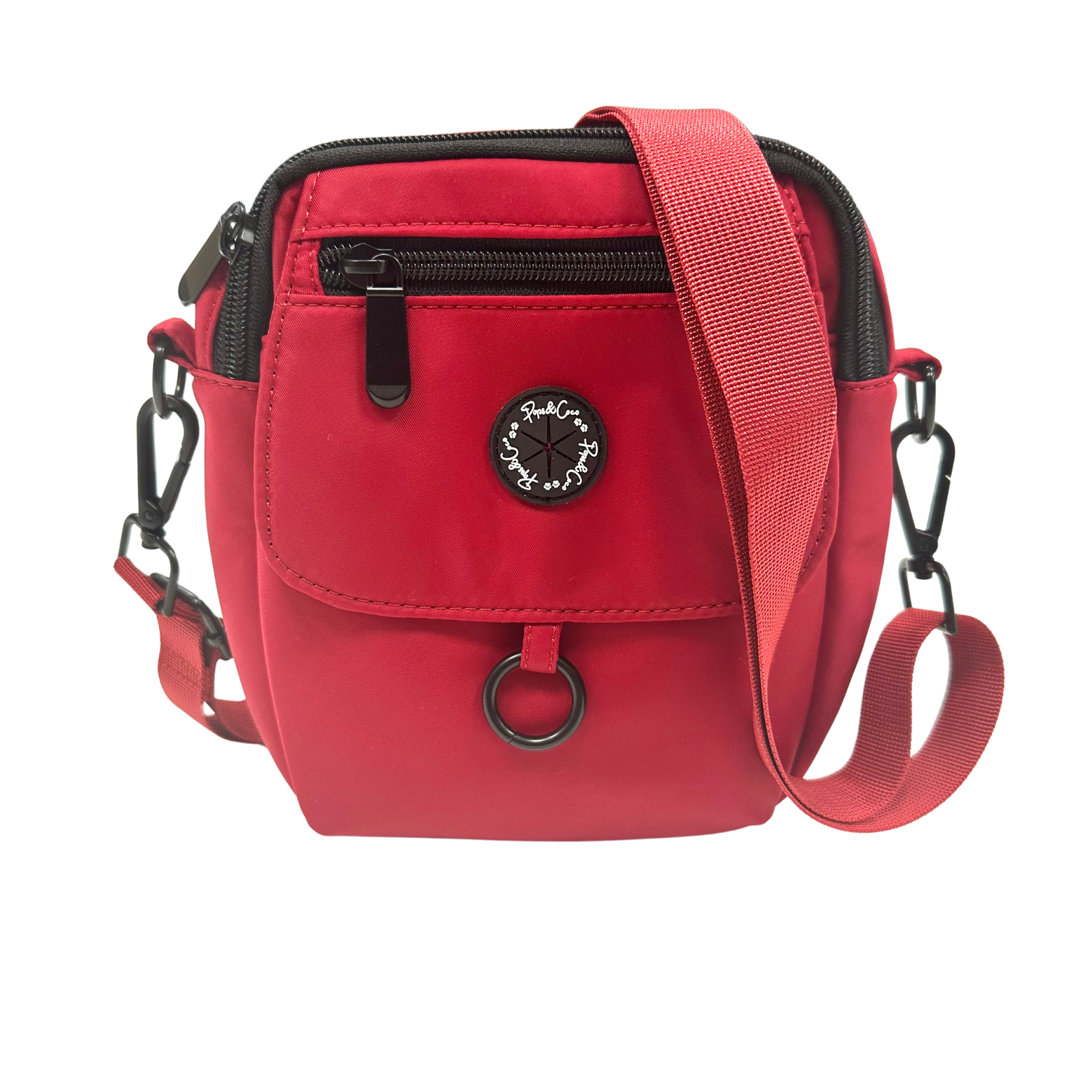 Coming in solid colours, with a matching nylon adjustable strap, these bags really stand out. And pockets, well we've certainly given you options here! On the front of the bag is a poo bag dispenser which has it's own zipper and an O ring which you can use to hang any other accessories, like our Poop Mates for example. The unique design keeps this separate from the rest of the bag too meaning your poo bags aren't taking up precious space inside your bag. Then flip that pouch up by opening the magnetic button and you'll find a large hidden slip pocket underneath, perfect for your phone!